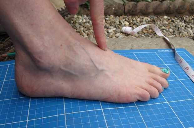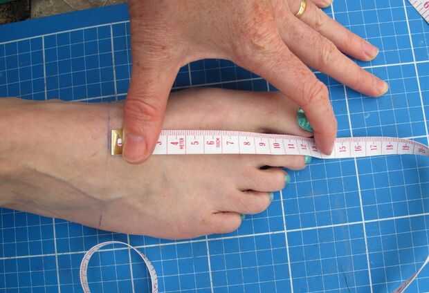 3. ahora Mida desde esta línea hasta el final del dedo más largo. Este es el 'arco a los pies' (línea T) longitud.