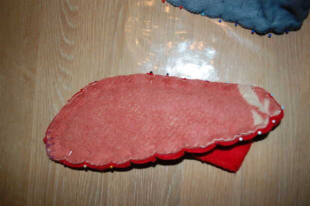 aquí es un buen tutorial para hacer pantuflas de duende para niños. He utilizado una manta vieja que no es el color exacto de una zapatillas de elfo... Hubiera sido gran era rojo con decoración verde. Lamentablemente no tengo las antiguas prendas en