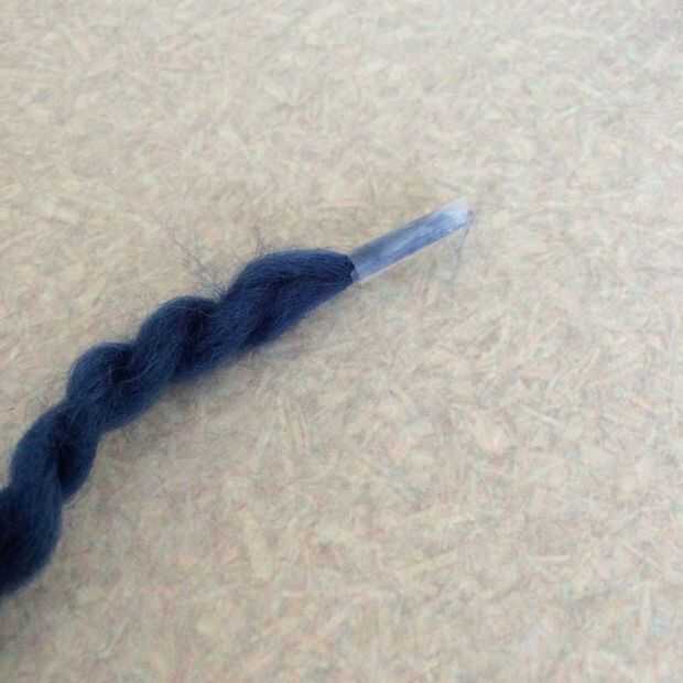 Para terminar la bufanda, cortar el hilo extra hasta 3 pies. Perdí mi aguja de hilo, pero si tienes uno no dude en utilizar para este paso. Si no tienes uno, utilice cinta para el final del hilo más pequeña y más fácil de hilo.