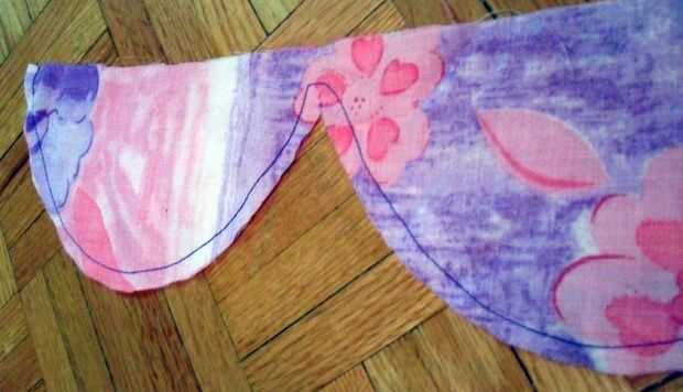 Utilizando estos lugar dos vieiras derecho lados juntos, pin en su lugar y cosa una costura alrededor del borde curvado con un margen de costura de 3/8".