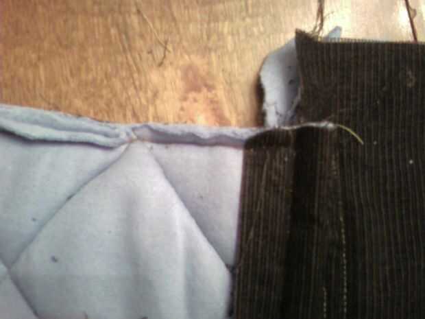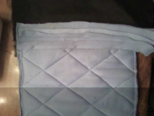 Cuando se han acolchado ambas caras, doble todo en la mitad y poner tu laptop en él para ver cómo encaja. Marca donde deben ser y coser los lados los lados (a través de todas las 10 capas de tela) asegurándose de pespunte al iniciar y terminar. (Esta fue la parte más difícil para que mi máquina de coser manejar--rompió varias agujas pesadas!)