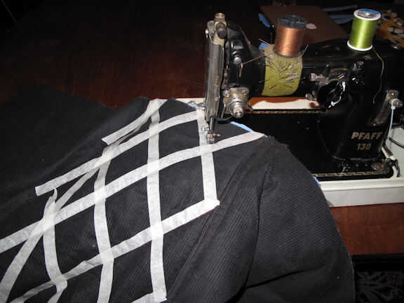 Utilice una regla y tiza para hacer líneas que se entrecruzan en su sección acolchada alrededor de 3 o 4 pulgadas de distancia y se cruzan a los diamantes de forma. Hacerlo en ambos lados de la parte acolchada de la manga del ordenador portátil.
