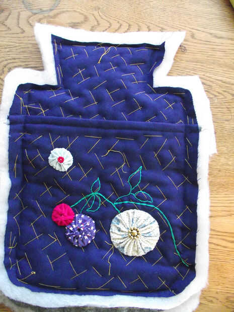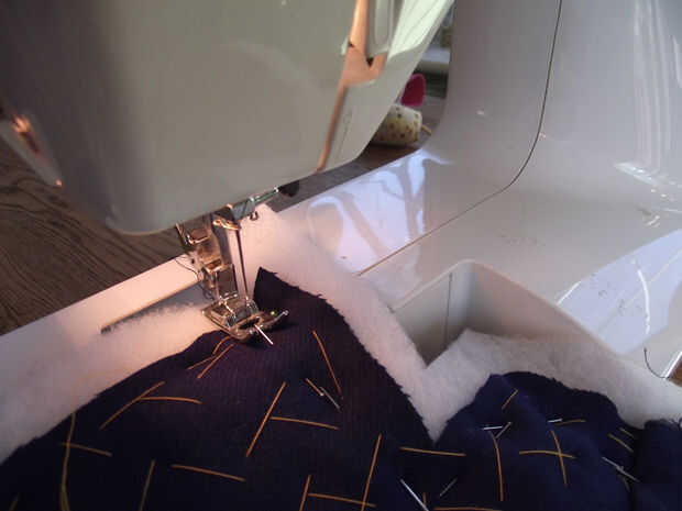 Perno alrededor de la botella (aproximadamente la mitad y pulgadas de los lados) y coser con la máquina. Usted puede hacer esto a mano, pero tarda un poco más.