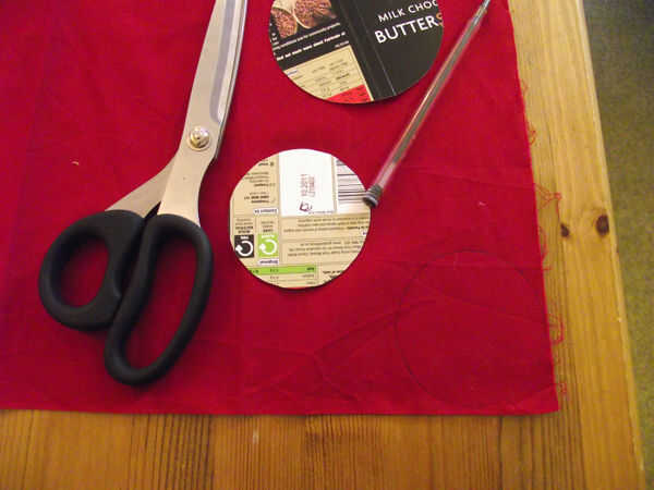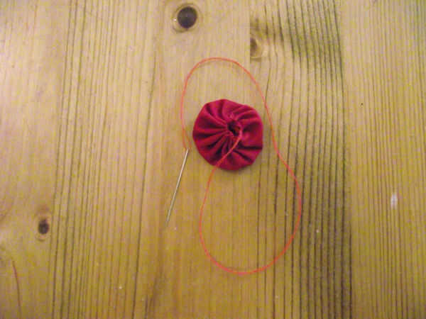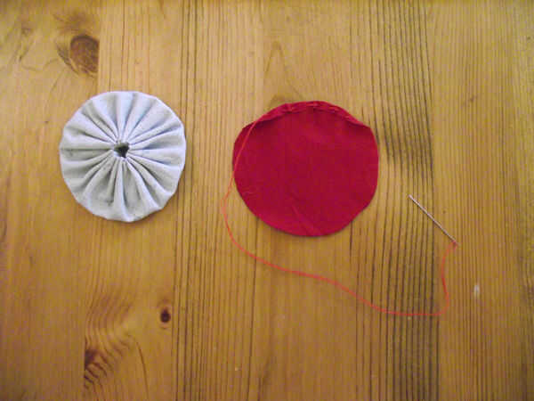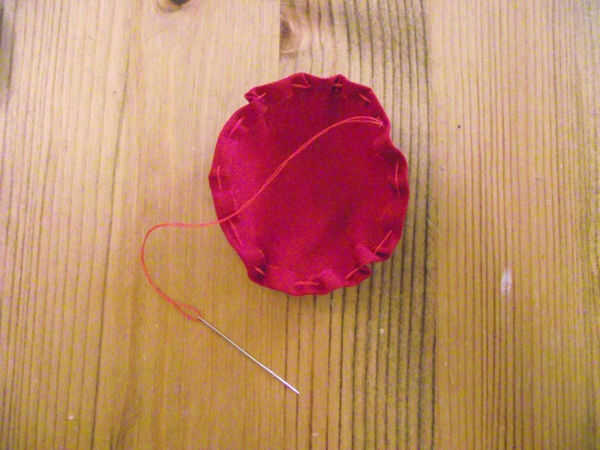 -Cortar el círculo de tela y luego coser una puntada corriente cerca del borde.