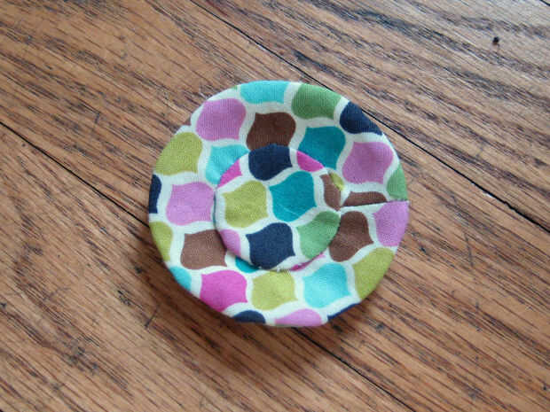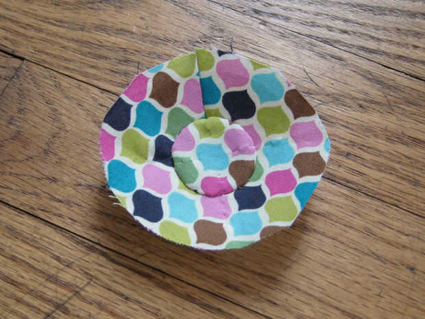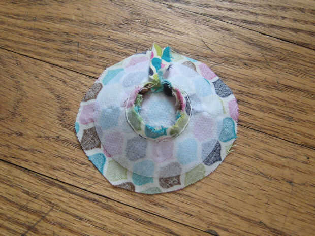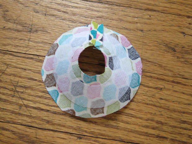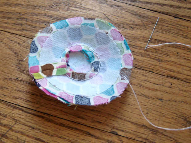 Coser los círculos en los orificios redondos. Recorte cualquier bulto extra.