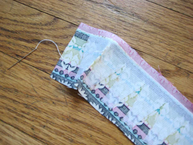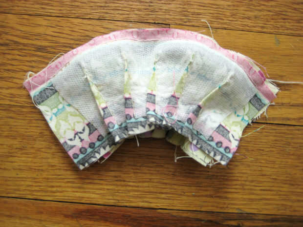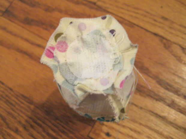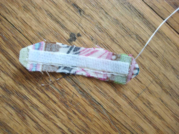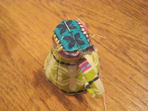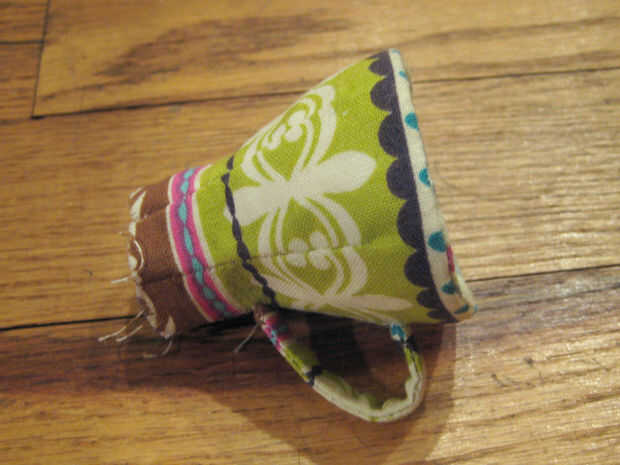 Coser el asa a los lados de las tazas de té exteriores. Esto es complicado, pero usted puede empujar de la guarnición hacia arriba y fuera del camino un poco.