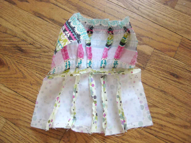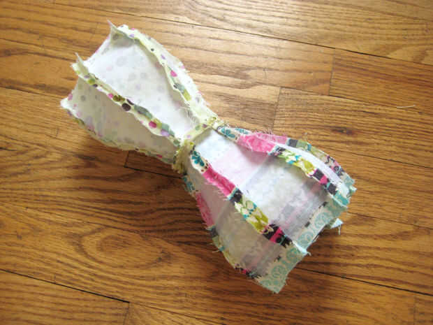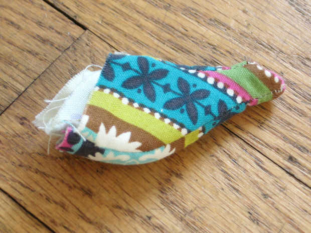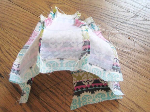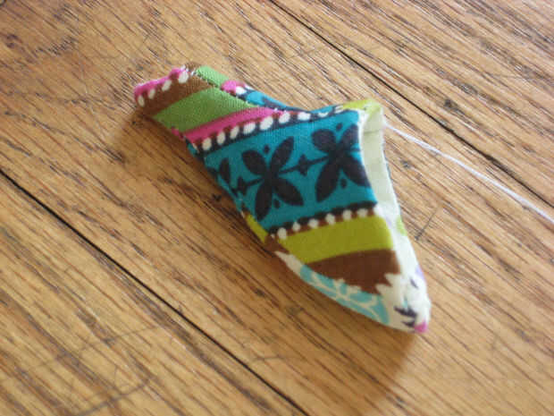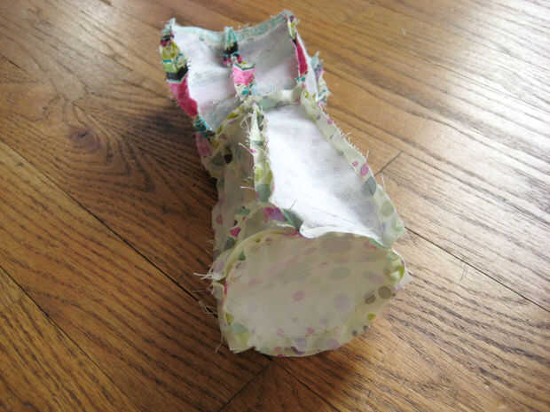 Coser juntos los extremos de los inyectores. Recorte cualquier exceso de margen. Gire derecha hacia fuera.