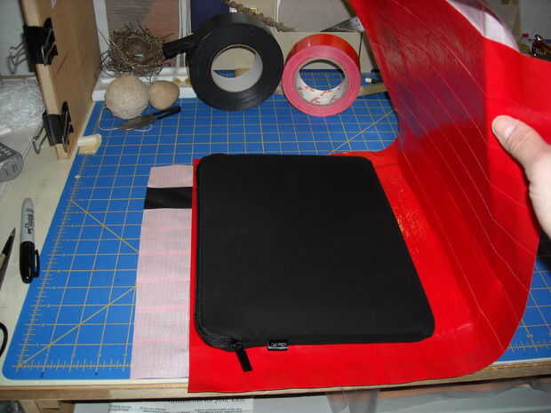 he recortado los bordes y utilizado la funda de portátil original de PC para ayudar con el final doblar-sobre. Esto es cuando me di cuenta que debo han utilizado un pedazo más largo de amortiguación de espuma.