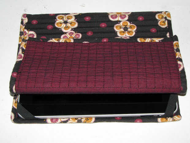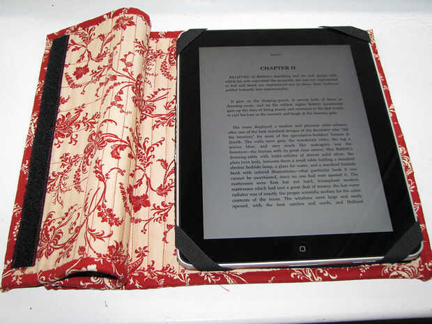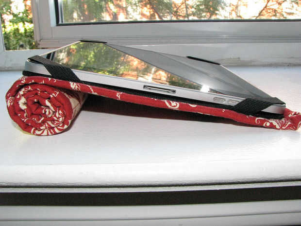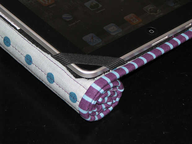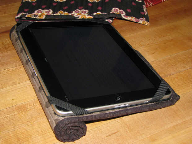 Cuando el iPad salió por primera vez, las opciones de la cubierta eran bastante débiles. El caso de Apple oficial fue agradable ya que era delgada y por lo que podría apuntalar la pantalla. Generalmente hacer casos de cremallera para los dispositivos, pero para el iPad pareció preferible disponer de un caso que podría permanecer en mientras la está usando. Me inspiré por el Gigabyte Roll Pad que utilizo para mi portátil para crear este caso acolchada. Se abre como un libro para sostener en una mano, o rollos abierto para sostener tu iPad para que tenga un ángulo de visión bueno.