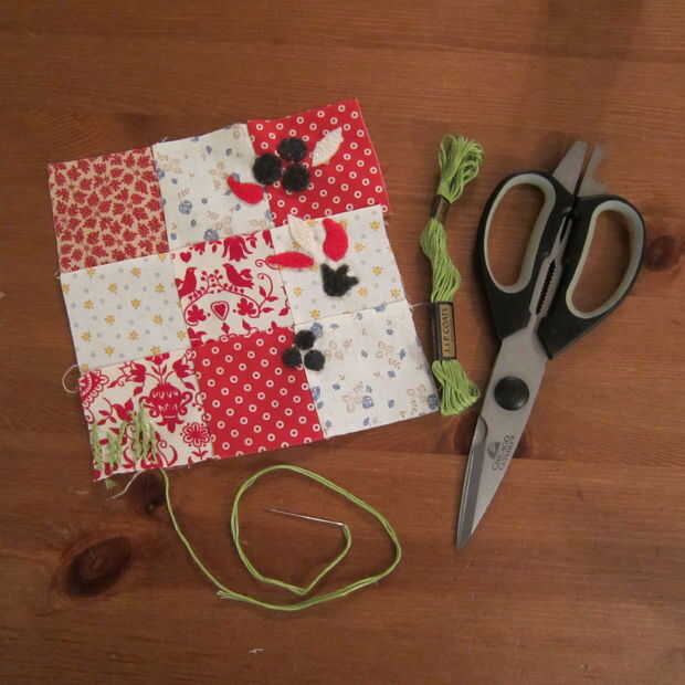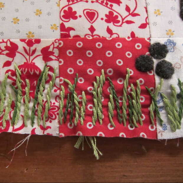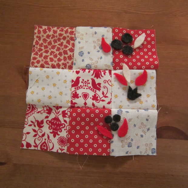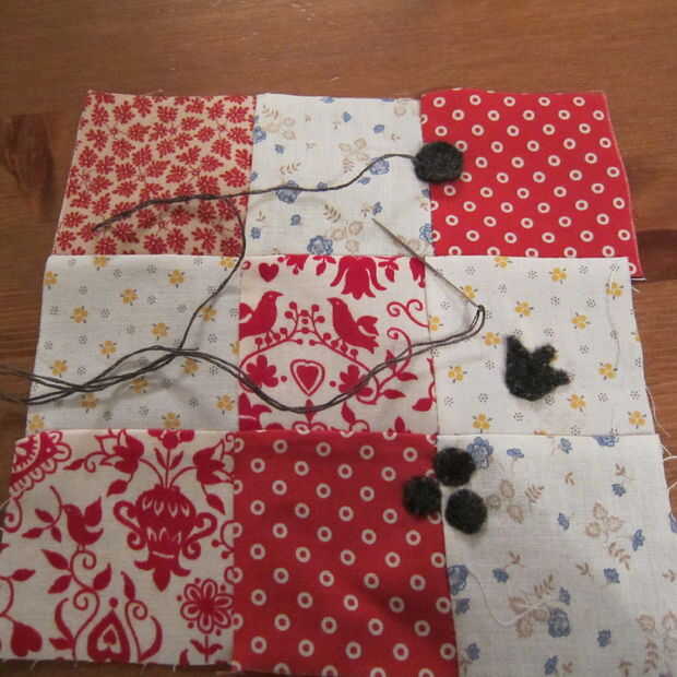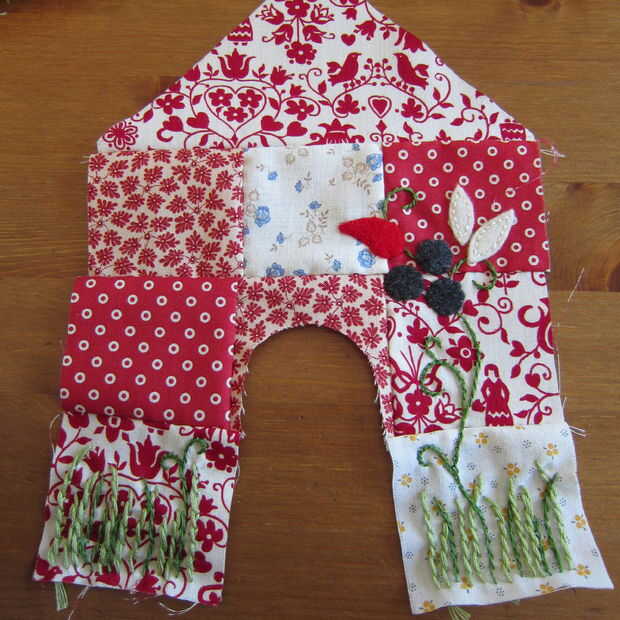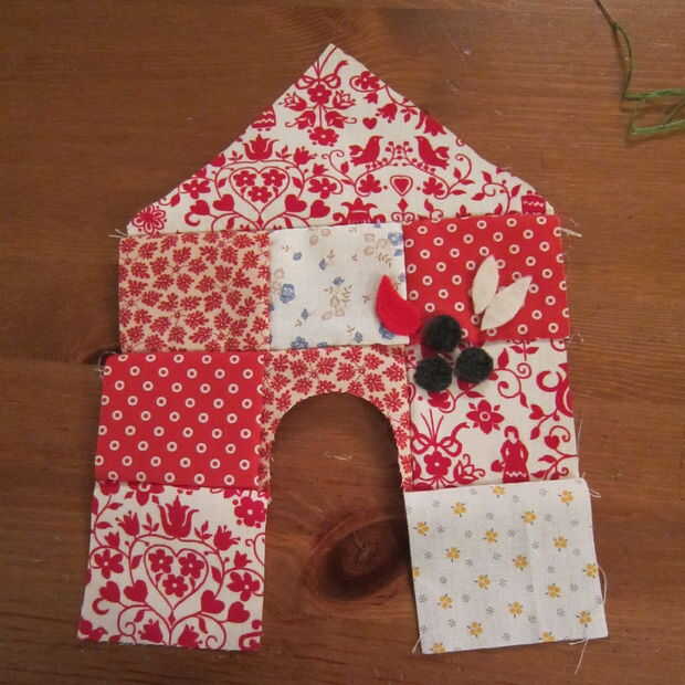 Repetir en cada panel. Mantenía la espalda de la aves casa una pieza de algodón estampado. No decidí adornar ya que es la parte de atrás.