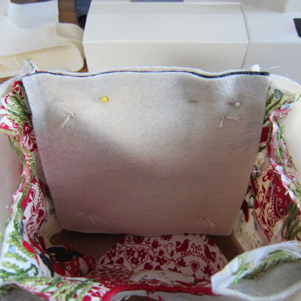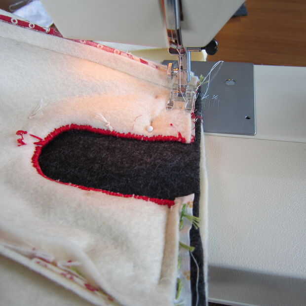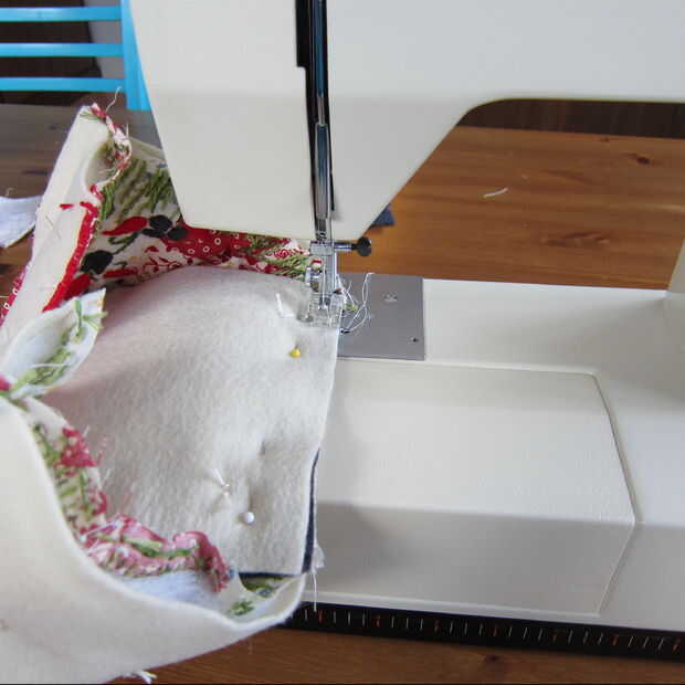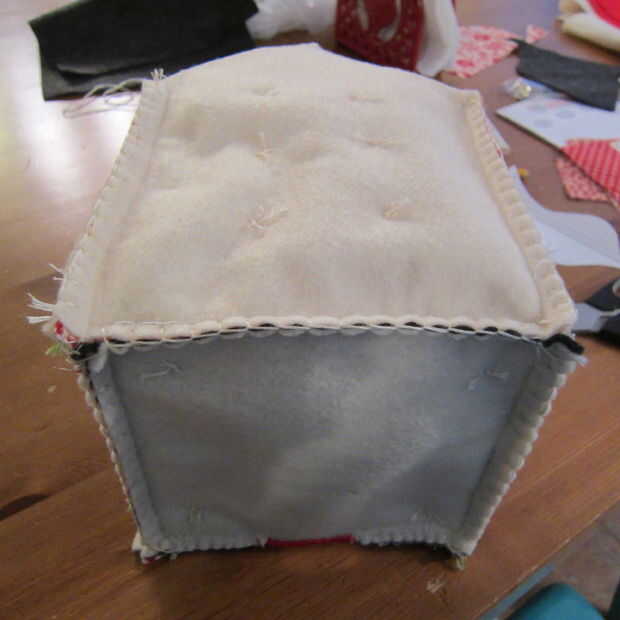 Esta parte es un poco difícil de explicar, pero usted tendrá que repetir con cada borde de la parte inferior para fijarlo a la casa del pájaro. Deberás doblar las piezas y seguir fijando y vuelta a coser todo alrededor.