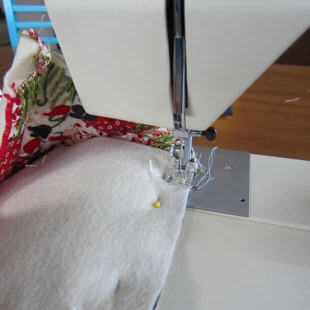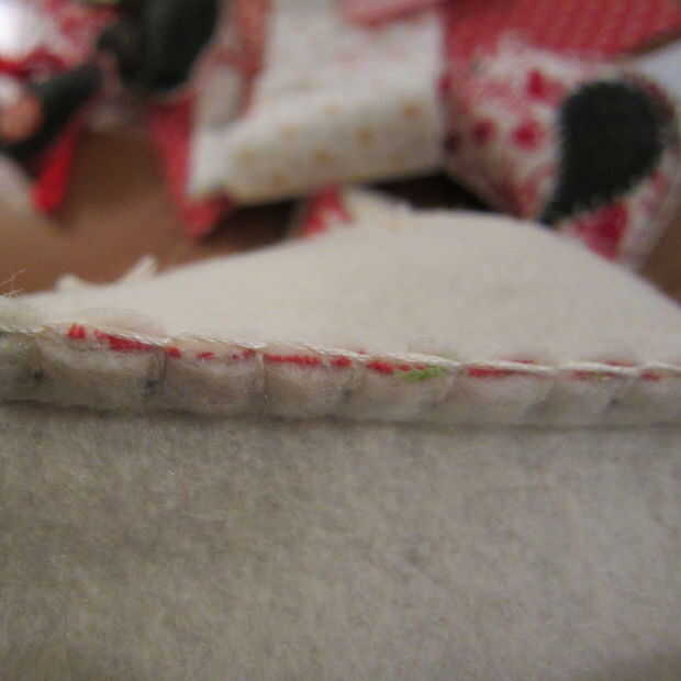 Hacer unas puntadas en el fieltro para asegurar todas las piezas juntas