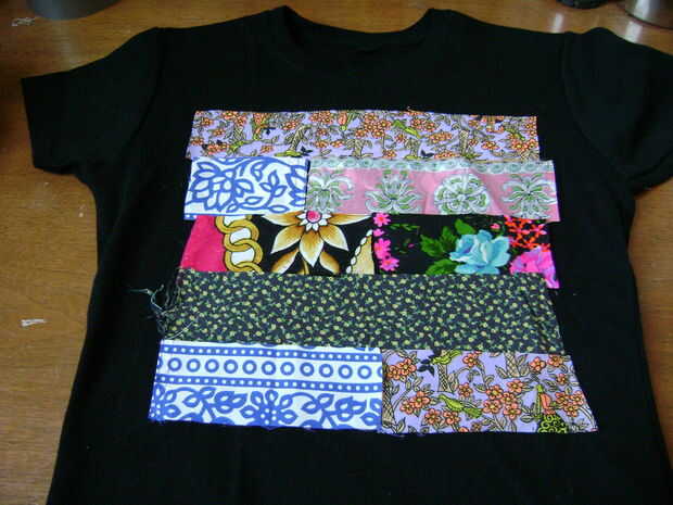 * Nota: si están cubriendo una imagen en la camiseta vieja medida el diseño y colocar las tiras para el diseño de la portada.