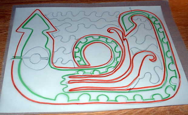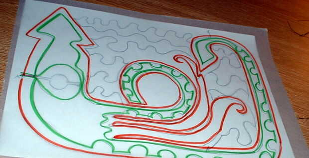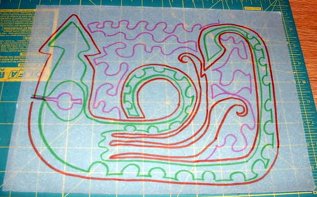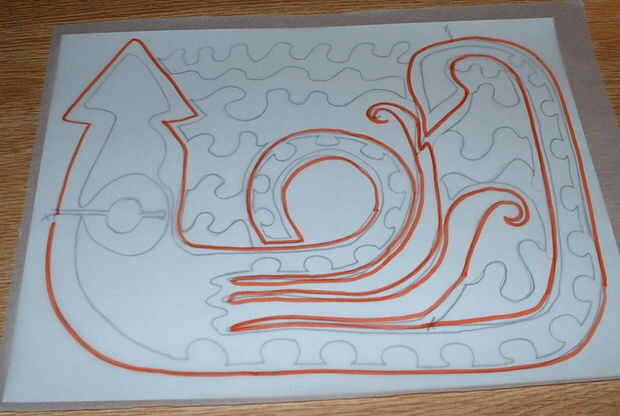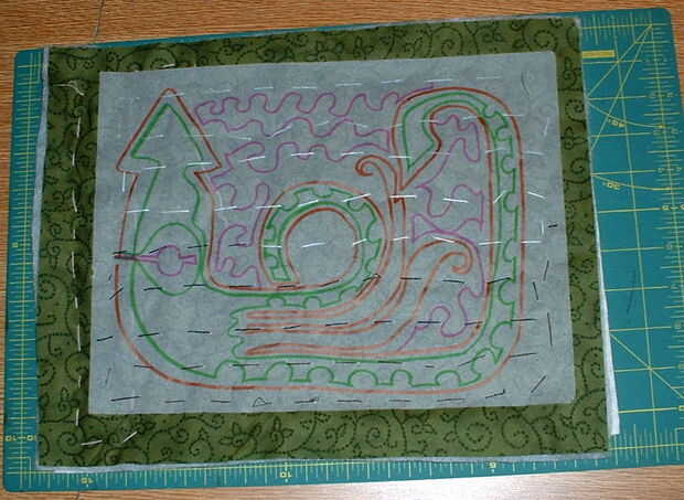 Al igual que juntar las piezas, acolchado es todo sobre el diseño que hayas elegido. Esta es una oportunidad para definir fronteras de color, espacios abiertos con la repetición de patrones de jazz o crear dibujos sobre su colcha. Una mirada dura en su diseño y decidir donde tejido costura mejorarlo, a continuación, utilizar papel de calco para esbozar las líneas que va a dibujar. Coloque el papel de calco a la colcha con puntadas de hilván y cose sobre él como una guía (una vez hecho el acolchado rasgarán sin efectos dañinos para el resultado final).