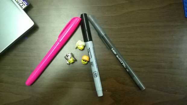 • Bolígrafos, marcadores o lo que sea escritura utensilio que te gusta y que tiene una tapa con una tapa suave