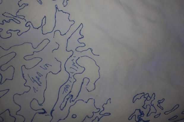Coloque la parte superior de la colcha en la mesa de luz y rastrear cada área donde falta el bateo. Es donde usted acolchar (oscuro hilo de coser).