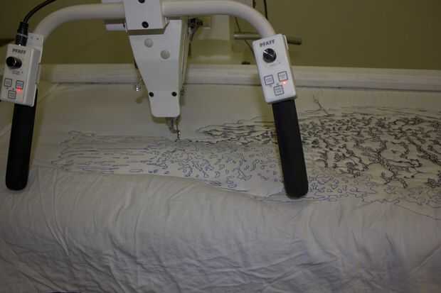 Acolchado de brazo largo tiene cosas especiales.  Si usted tiene acceso a un lo mismo taller como lugar de la fábrica en San Diego, usted puede utilizar su brazo largo.  Básicamente sólo mueva la máquina sobre la tela y hacer tu acolchado.  Es divertido y rápido pero hay un poco de curva de aprendizaje.