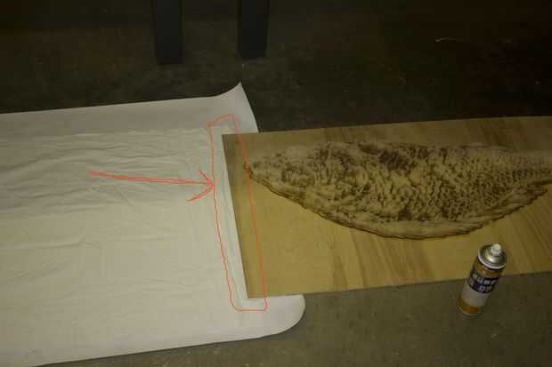 Obtenga su hoja superior y spray de pegamento a lo largo de un lado y asegúrelo a la parte inferior de la madera contrachapada.