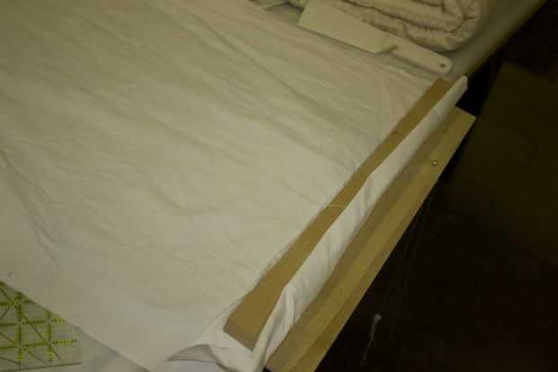 Haz una pequeña tabla y pegar en el otro extremo de la tela por lo que es más fácil mantener recta.