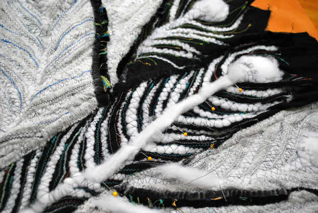Feria de ADVERTENCIA: mi abanico de plumas de primera me tomó 3 meses para llegar a este paso. ¡, hice todas las plumas primero. Cosí entre otros conciertos, cuando en el tiempo, sobre un viaje familiar, en los fines de semana y mientras que en hiato de la sesión de programación. Segunda se llevó aproximadamente un mes. Finalmente voy a llegar aún más rápido.