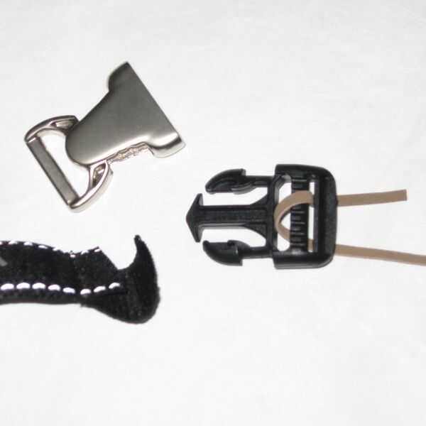 Estas piezas creo que son realmente buenas. Tenga en cuenta que la pieza de plástico a menudo se hace para que la correa puede apretarse demasiado. Las piezas fueron diseñadas obviamente para algo más que una cuerda de seguridad.