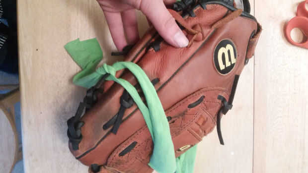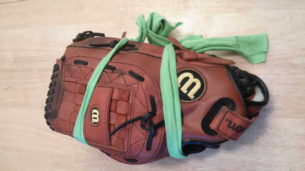 Deja el guante envuelto así durante al menos 24 horas. Cuanto más tiempo dejas envuelto más el cuero podrá estar condicionada a esa forma.