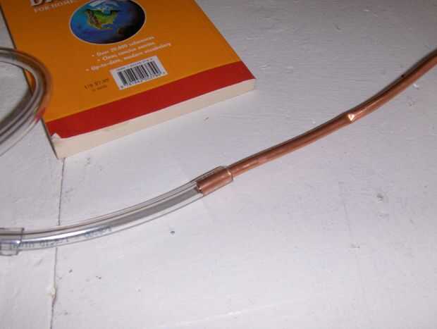 Ahora, la bomba baratito compré sólo encajaría en tubería de 1/2" ID, y no tienen nada de lo que sería reducirlo a 1/4" para mí, por lo que aparejado a. Como se puede ver en las fotos primeras y segunda, 1/4" tubería se ajusta muy bien alrededor de la tubería de cobre. En la tercera foto, se puede ver cómo sólo inserté el 1/4" a 3/8" a 1/2" de la tubería, que entonces cabría en la bomba. Esto por supuesto se filtró, que hizo necesario el uso de abrazaderas de manguera, Foto 4. Siento que esto reduce la eficiencia de la bomba de mi, pero ahora tengo una razón para comprar una más grande, más fuerte, la bomba más varonil! O eso, o comprar tubo de cobre más grande, que no es tan emocionante.