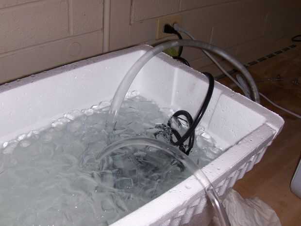 he comprado una espuma de refrigerador para mantener mi refrigerante (agua helada), como tengo fácil (libre) acceso a agua y hielo. Una vez que lo tenia todo conectado, con un tubo de volver de la bomba en el intercambiador de calor y otra desde el intercambiador de calor a la nevera, yo había sumergida la bomba y había conectado. En este punto que usted podrá decir si o no tienes fugas real rápido. Si lo hace, sólo lo pare y apretar las cosas. Si tienes un agujero en el tubo de cobre de flexión entusiastas, podría tener un problema difícil de resolver. Yo no tenía ese problema, así que no podía empezar a contarles cómo solucionarlo. (Yo soy parcial a JB Weld para todo roto aunque) Me he dado cuenta que hacia el final de la tubería de cobre, no estoy recibiendo ninguna condensación, que significa el final, el agua ha perdido su efecto de enfriamiento. Cuando llego a una bomba más grande, el agua fluirá mucho más rápido y que no caliente tanto. Bueno, eso está sobre él, cualquier sugerencia será bienvenida!
