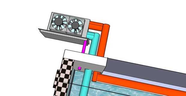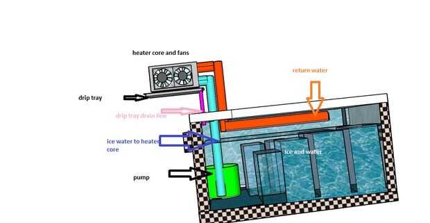 Compré un núcleo del calentador utilizado de fleabay por $25, un refrigerador que cabría entre mis asientos de niños en el asiento trasero $35, dos ventiladores de ordenador para fleabay $15, y un cebo vivo 12 voltios bomba de pozo $30 wallyworld navegación isla. Cuando montados como se muestra que el núcleo del calentador soplaba aire frío en la parte posterior de mi cabeza, pero no fue suficiente para enfriar mi coche con windows irradian y sol ardiente shinning en. También pensé que mi núcleo del calentador era basura como agua transmitido de él mientras estaba funcionando, después de presión comprobar que lo encontré era todavía bueno, había sido de condensación toneladas de agua del aire húmedo.