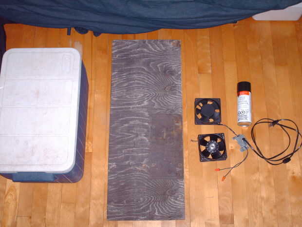 he construido totalmente con materiales que se encuentran alrededor de mi casa.Esto no es enfriar un cuarto entero, sólo crea una agradable brisa fresca.Materiales necesarios:Coleman Personal8 refrigerador (o similar)Pequeño, barato refrigerador (gen