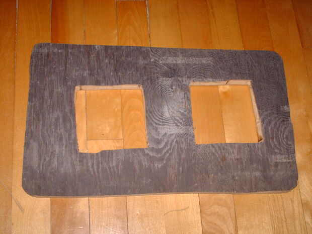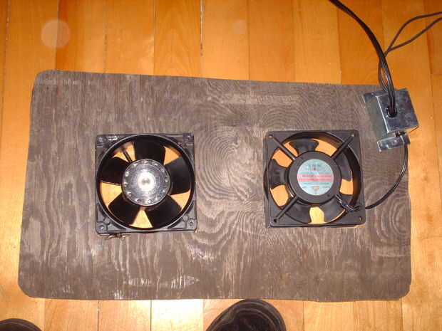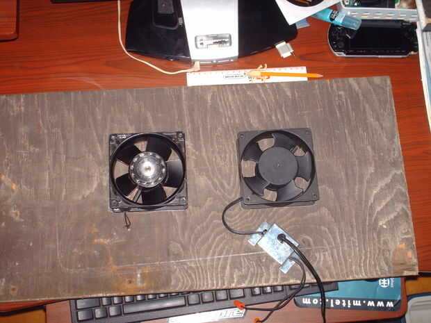 Escala y dibujar en el tablero de madera corte de líneas para los fans y para la cubierta, para encajar perfectamente en su lugar. Asegúrese de que puede entrar el ventilador dos en la cubierta. Después de cortar los agujeros y todo encaja en su lugar, usted no puede pintar la nueva cubierta (Pinto cuenta con pintura en aerosol negro) en el color de su elección.
