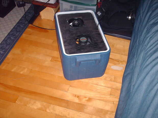 Aquí está mi última empresa en refrigeración. Siempre quise que un portable significa enfriar un recipiente de comida o aire condición un pequeño espacio. Utilizando piezas de repuesto ahí decidió crear un pequeño paquete acondicionador de aire.Tengo