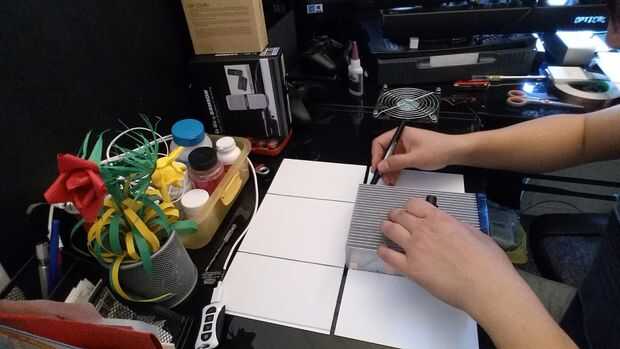 Medir el tamaño del disipador de calor y corta la espuma, luego doblar la hoja de estireno