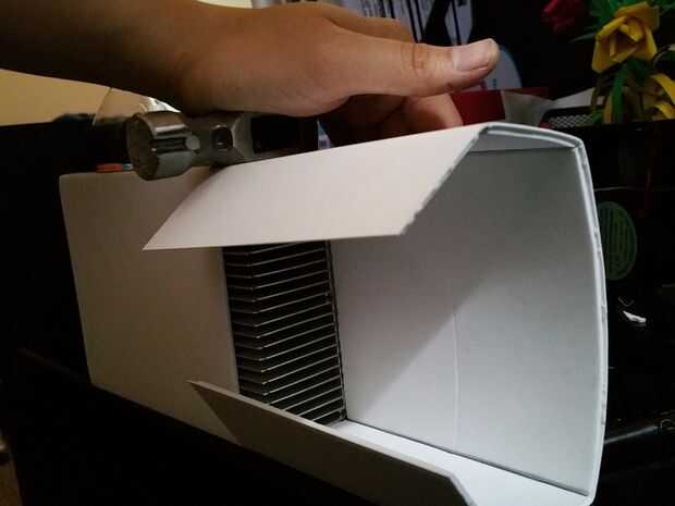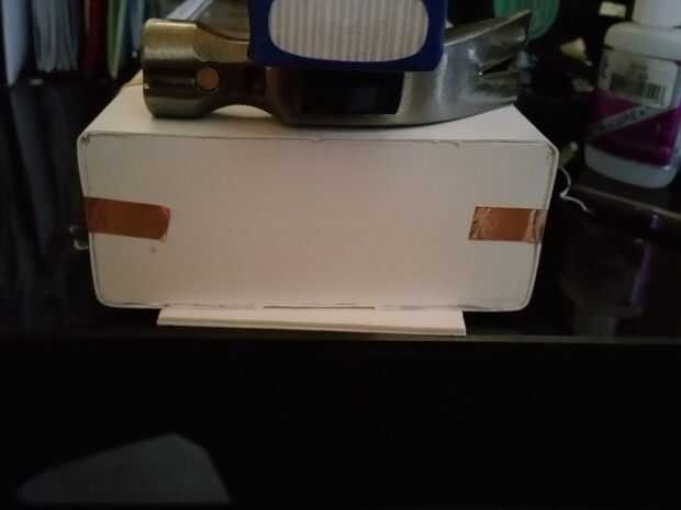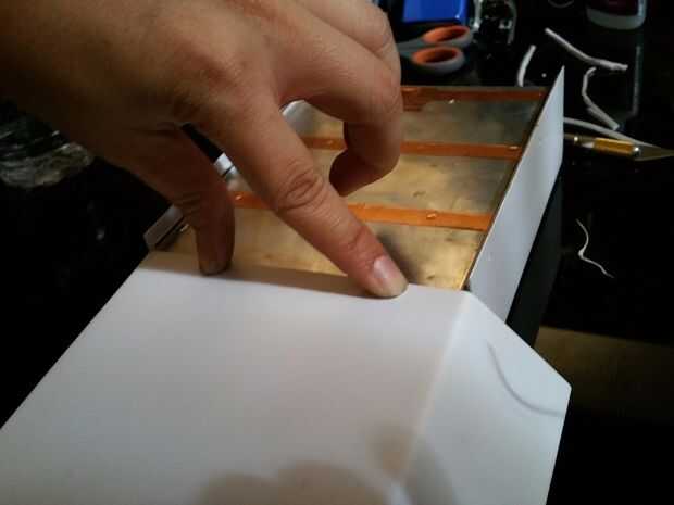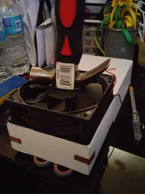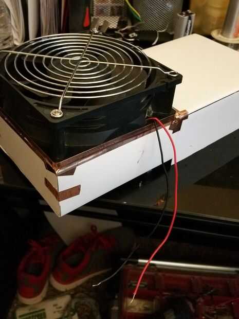El ventilador a la caja del pegamento y sellar con cinta de cobre