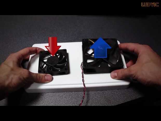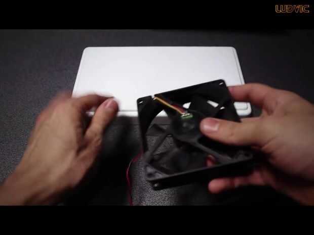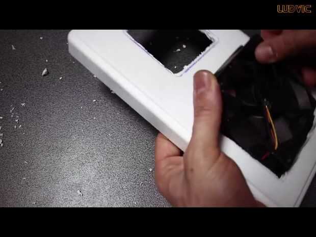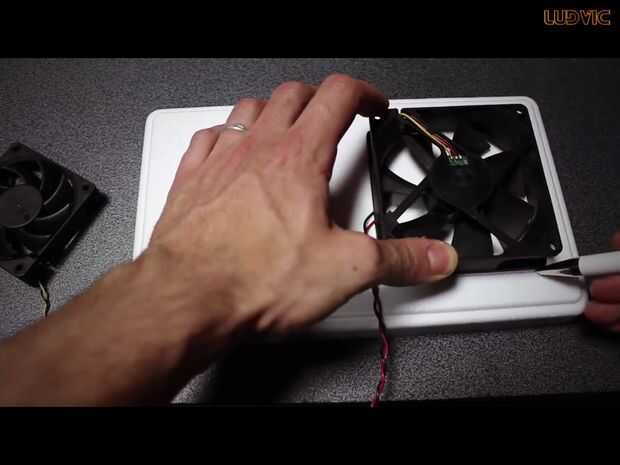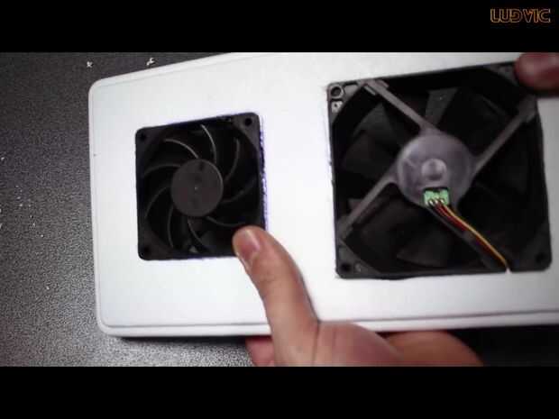 Tomar dos ventiladores (utilicé los enfriar la cpu) Recuerde tienes que colocarlos de forma que aspira el aire, mientras que el otro empuje apagado...