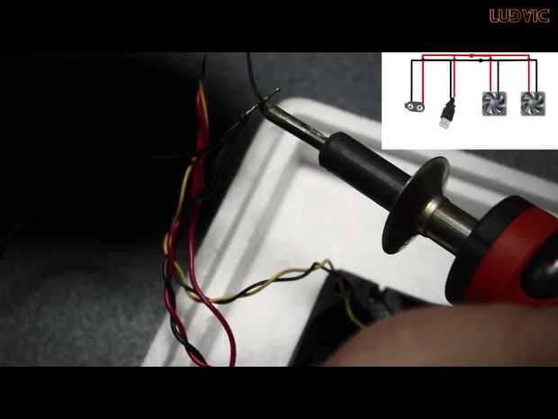 Ahora tienes que conectar la fuente de alimentación del ventilador con una soldadura, puede ver el dibujo del circuito, pero es un trabajo realmente simple.