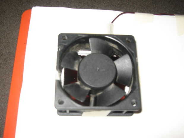 a continuación, vamos a trabajar con el ventilador. En primer lugar, tira de los extremos de los cables para que el alambre de plata interior es visible. A continuación, hacer lo mismo en el transformador (cortar la pieza de entrada primero). Cuidadosamente coincidir juntos los cables y enchufe a un tomacorriente de pared. Si el ventilador no gira, está bien, sólo invierta los cables. Cuando el ventilador está en funcionamiento, desconecte y Conecte cada cable por separado con cinta aislante. A continuación, envolver un trozo de cinta aislante alrededor de ambos, asegurando que los cables permanezcan juntos. Por último, instale el ventilador en la tapa con cinta adhesiva (Asegúrese que el ventilador sopla hacia abajo).