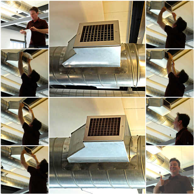Uno de los riesgos de los espacios de oficina para gente como yo, wimpy son runaway aire acondicionado. Desde que nos mudamos a un nuevo espacio de oficina en el muelle 9, he estado luchando contra un sistema de climatización de alta tecnología que apunta un vórtice Ártico devastador hacia abajo sobre mi escritorio. Para luchar contra él, comencé a usar guantes sin dedos. Entonces, compré un sombrero de invierno caliente, difusa. Por último, trajo en una manta, una manta eléctrica. Me y esa manta hemos convertido en amigos, pero esta semana me decidí a ganar la guerra contra este chorro invernal de una vez por todas con un poco astuto subterfugio de oficina: una rejilla de ventilación del faux.