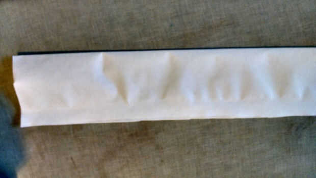 Esta doble por la mitad longitudinalmente con los lados de plástico brillantes mirando hacia el interior y pulse una costura por el borde abierto de 1/2" de ancho con un hierro caliente. Esto crea un sello permanente a lo largo del borde.