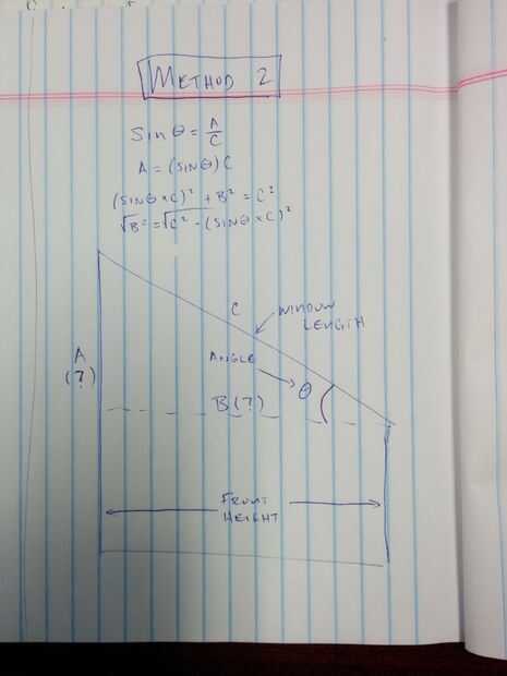 - EJ.: Si usted sabe que desea un ángulo de 20°, y su ventana mide 28", primero averiguar la altura del respaldo, utilizar el teorema de Pitágoras otra vez para averiguar la anchura.