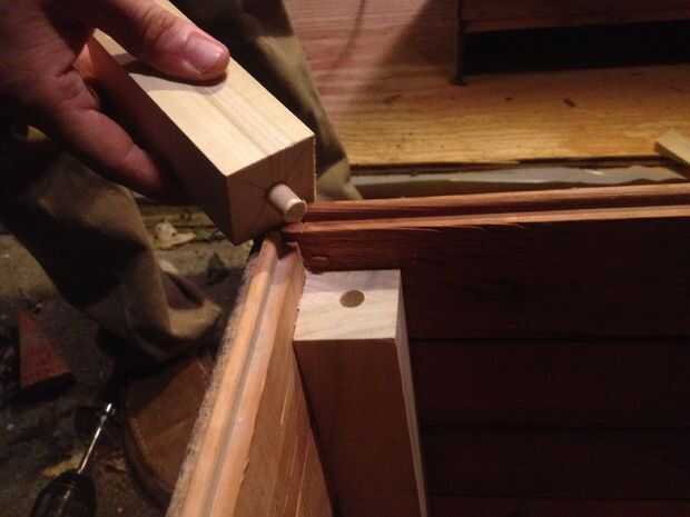 Los postes del respaldo tendrán más niveles que los cubre. Así que toma tu corte y desventajas de los postes delanteros, perfore un pequeño agujero en el centro aproximadamente 1" de profundidad y un agujero en la parte superior de los postes del respaldo y conectar éstos con algun pegamento y un trozo de espiga.