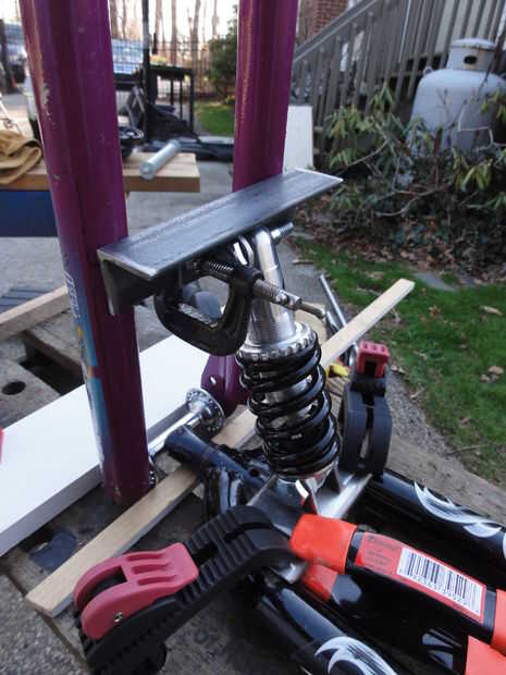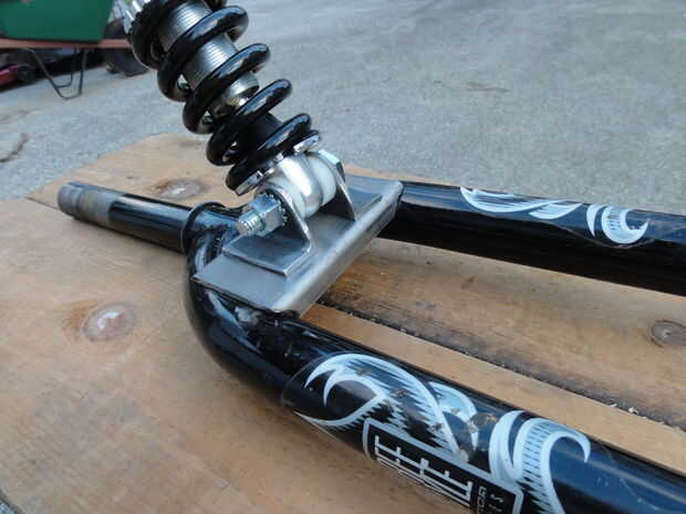 Por último, la horquilla vertical fueron empernada en el eje de eje de acero y el choque atornilladas a los soportes inferior y superior usando los pernos del eje 1/2" y espaciadores de nylon.
