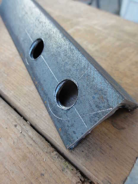 El ángulo de acero fue soldado a la parte superior de la horquilla de corte y soldado de los montajes de choque superior al ángulo y luego los bordes tierra abajo.