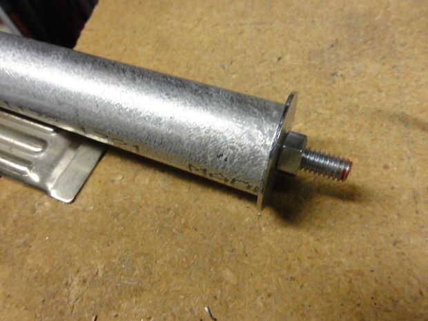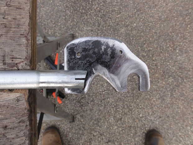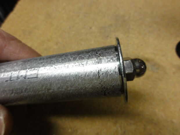 Este tubo de pivote fue hecha usando una longitud aprox. de 10" de 1" EMT con fender las arandelas de 5/16 "x 1 1/4" soldadas a la parte superior e inferior.