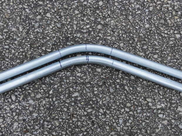 Empecé con dos largos de los carriles principales superior e inferior. Puesto que era incapaz de conseguir un uniforme de gran radio en la parte delantera del remolque como el BOB Trailer uso, opté por una curva de radio pequeño en el centro delantero con cortos tramos rectos hacia el radio pequeño se vuelve a los rieles laterales que flanquean. No estaba preocupado con la longitud total en este punto, mientras el frente se dobla en la parte superior y rieles inferiores estuvieron muy bien coordinados.