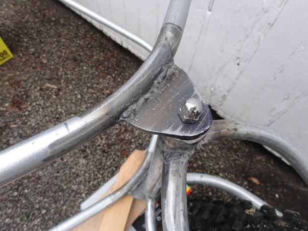 A continuación había soldado puntales verticales entre los rieles superior e inferior en cada lado del punto de pivote delantero.