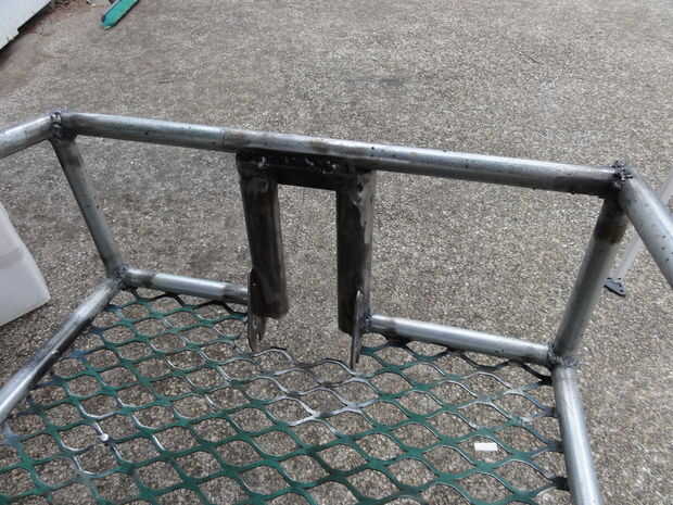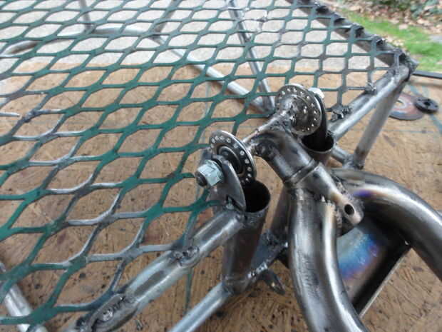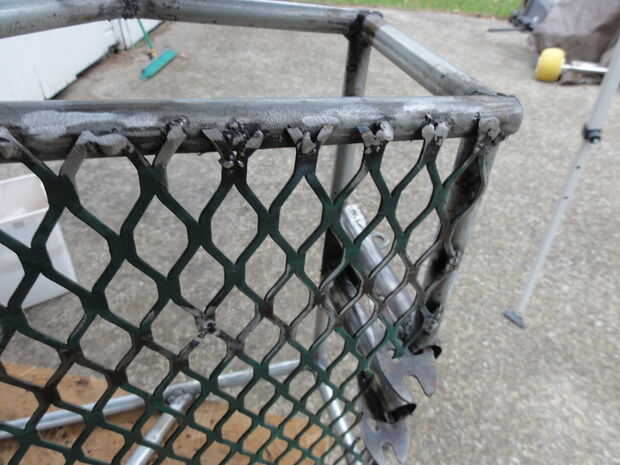 Antes de cortar el metal ampliado al tamaño final, soldar la parte vertical del triángulo trasero en la parte trasera del marco, cortar el metal desplegado alrededor de la horquilla y tachuela soldada con autógena el metal ampliado en la parte inferior del marco. Entonces tierra abajo de los bordes afilados/áspero del metal ampliado.