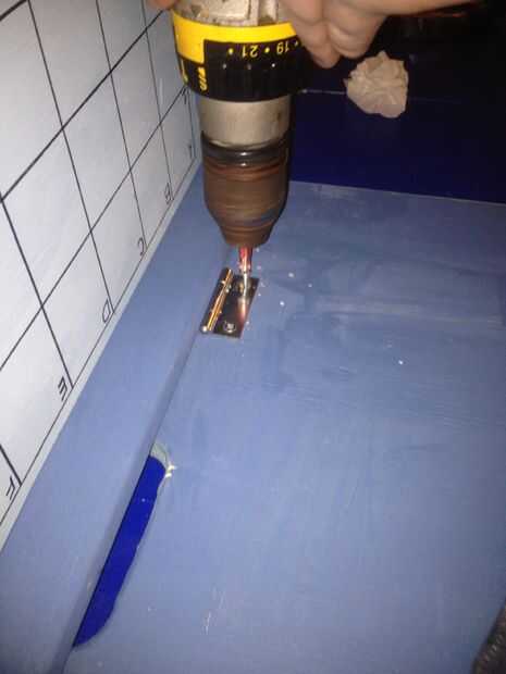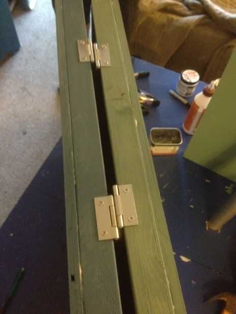Utilizando las bisagras, colocar las cajas del barco a la madera contrachapada. Me pareció más fácil primero, fije las bisagras a la caja del barco y luego adjuntarlo a la madera contrachapada. Al fijar a la madera contrachapada, tenga en cuenta que el pasador de la bisagra debe ser alrededor 2" del borde para permitir que el juego para quedar completamente plano y pliega muy bien.