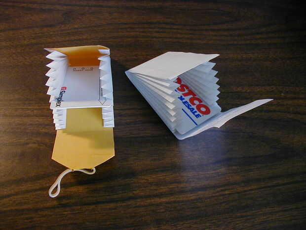 Opcional: Mientras que la billetera guarda cartas bastante bien en la fricción en la base del acordeón, puede, si lo desea, agregar cierta estabilidad de lado a lado pegando abajo un pedazo extra de papel de tamaño de una tarjeta a uno de los "compartimientos" en el centro del acordeón. Usted no pierde ningún espacio de almacenamiento y mantenga los lados de la mudanza lejos de uno a.