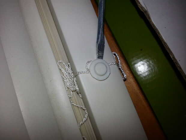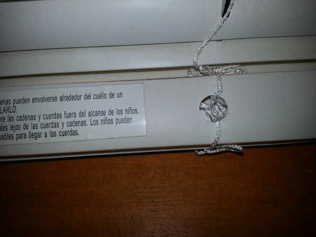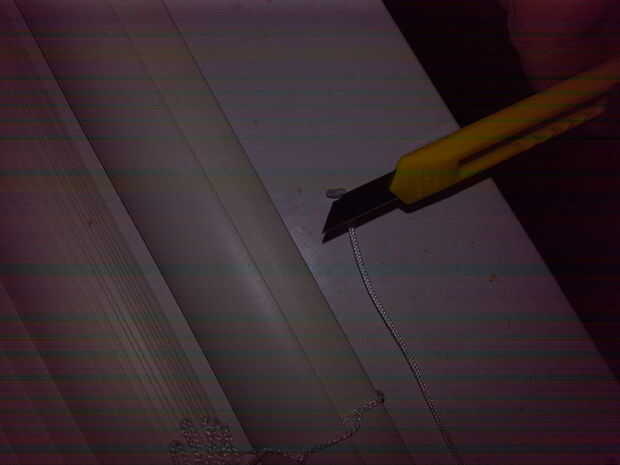 Fig 5 - tire el nudo que levanta las persianas (puede que necesite para pasar del otro lado para ayudar. Entonces simplemente cortar el nudo.